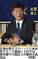 ▽記者会見するチベット亡命政府のセンゲ首相=2日午後、東京都千代田区の外国人記者協会